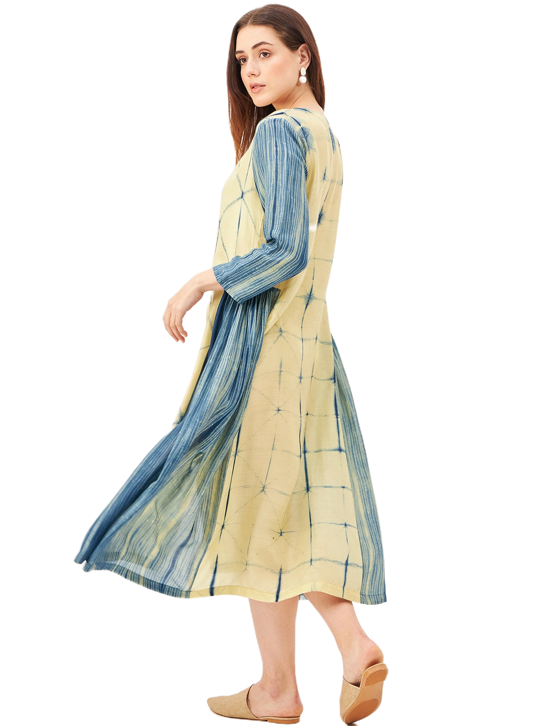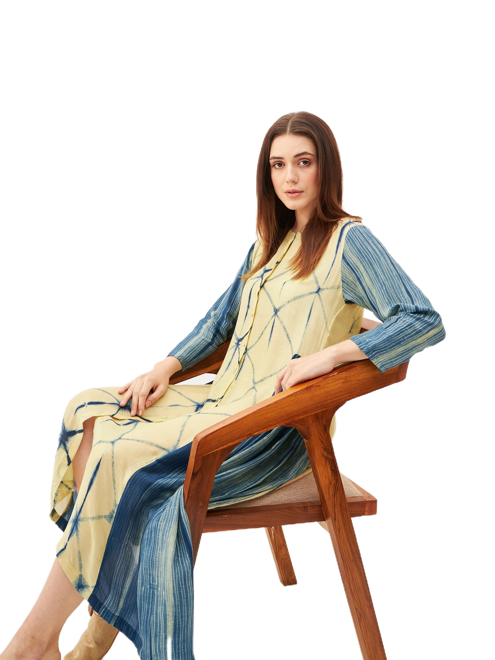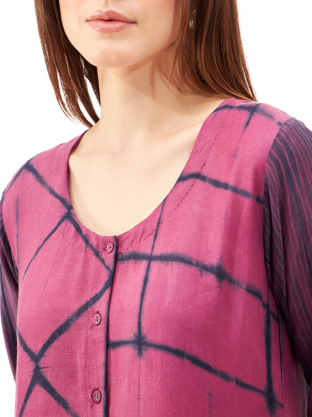 Elevate your wardrobe with this elegant dress, crafted from a luxurious blend of plant-based silk and cupro cotton. Designed in a rich purple indigo hue, it features a flattering side-gather detail and a classic round neckline. The front opening adds a touch of ease and versatility, while the full-length sleeves offer a graceful silhouette. Perfect for both casual and semi-formal occasions, this dress blends comfort with sustainable sophistication.