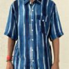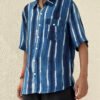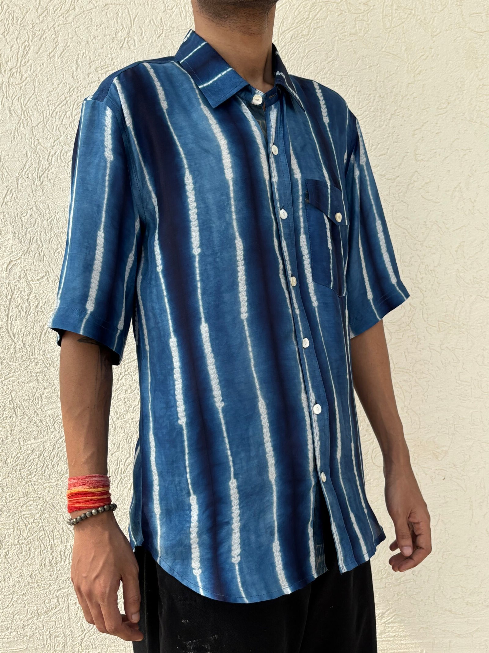 This half-sleeve men’s casual shirt is crafted from a plant-based silk and cupro cotton blend,