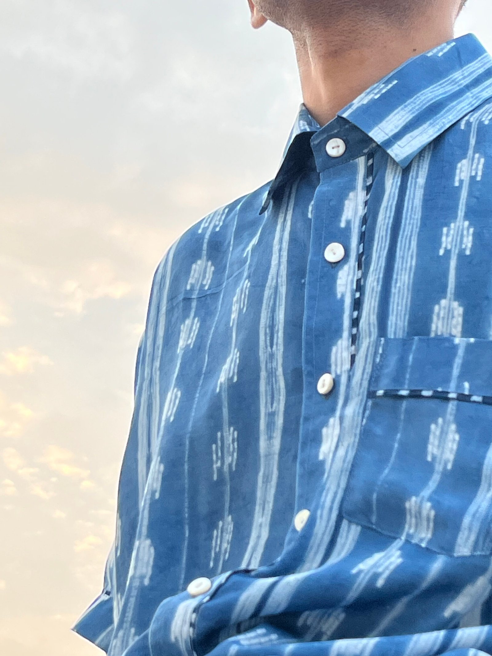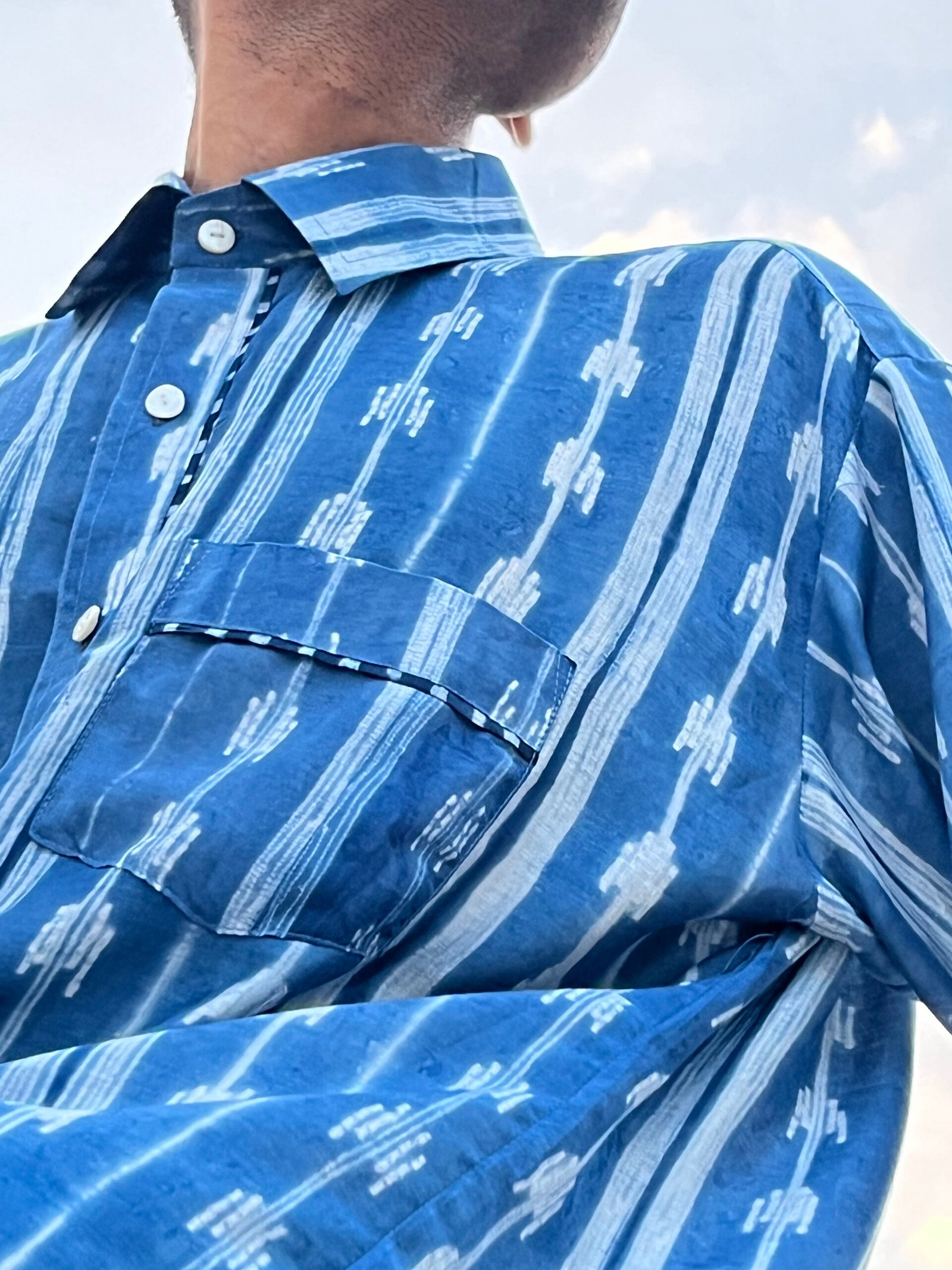 Crafted from a refined blend of plant-based silk and breathable cupro cotton, this handcrafted shibori shirt celebrates subtle detailing.