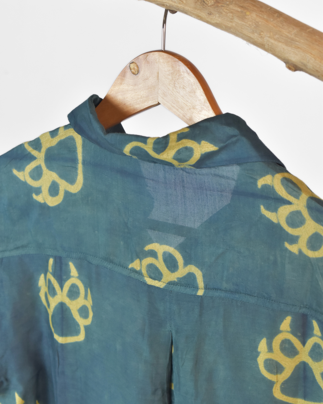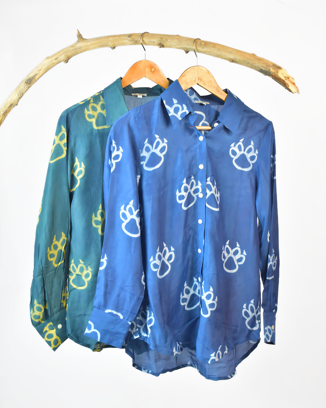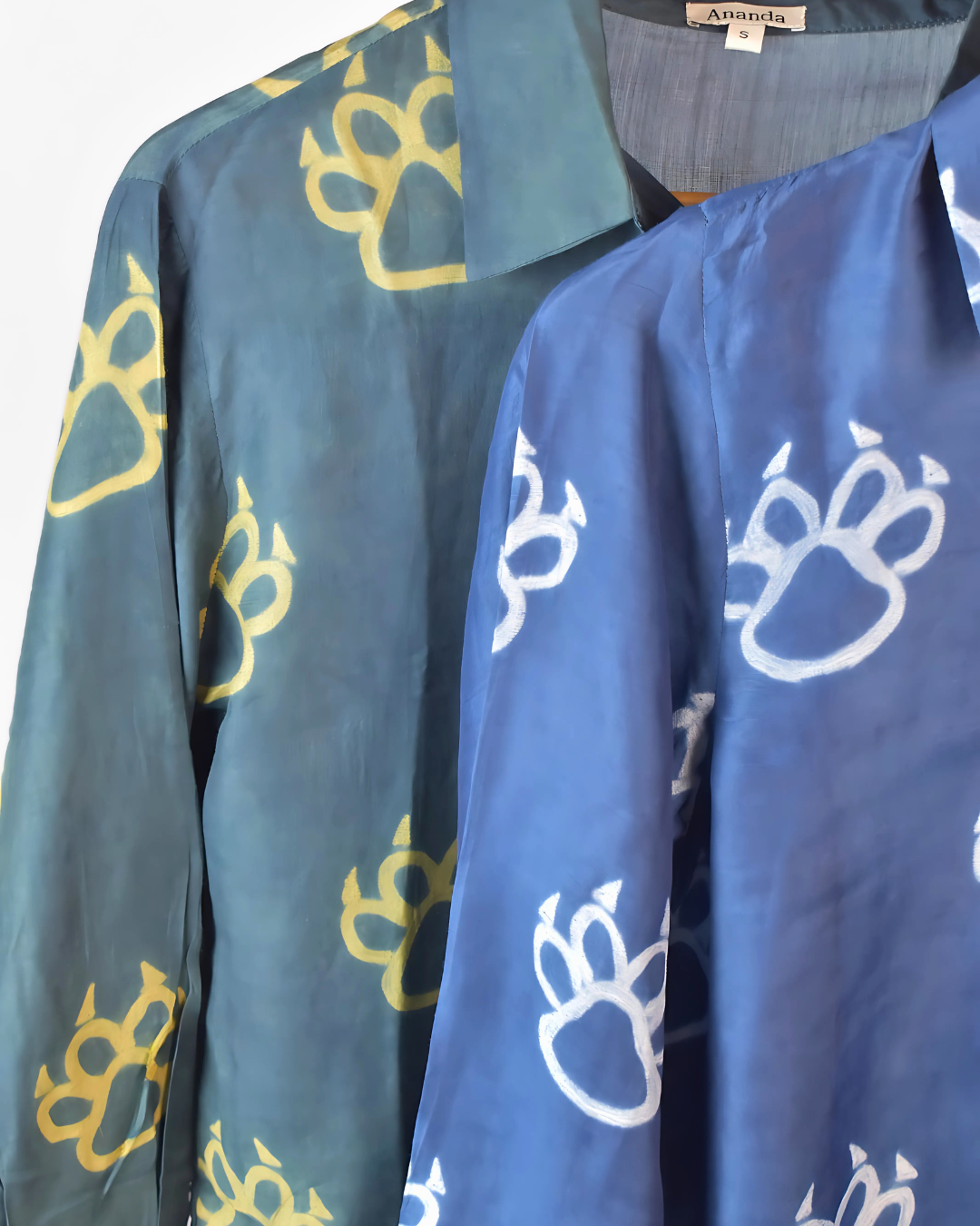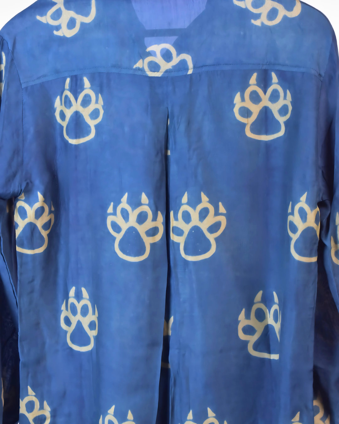 Crafted in soft plant-based silk and cupro cotton, this basic shirt is elevated with a unique paw-inspired Shibori design blending simplicity with artistic charm.